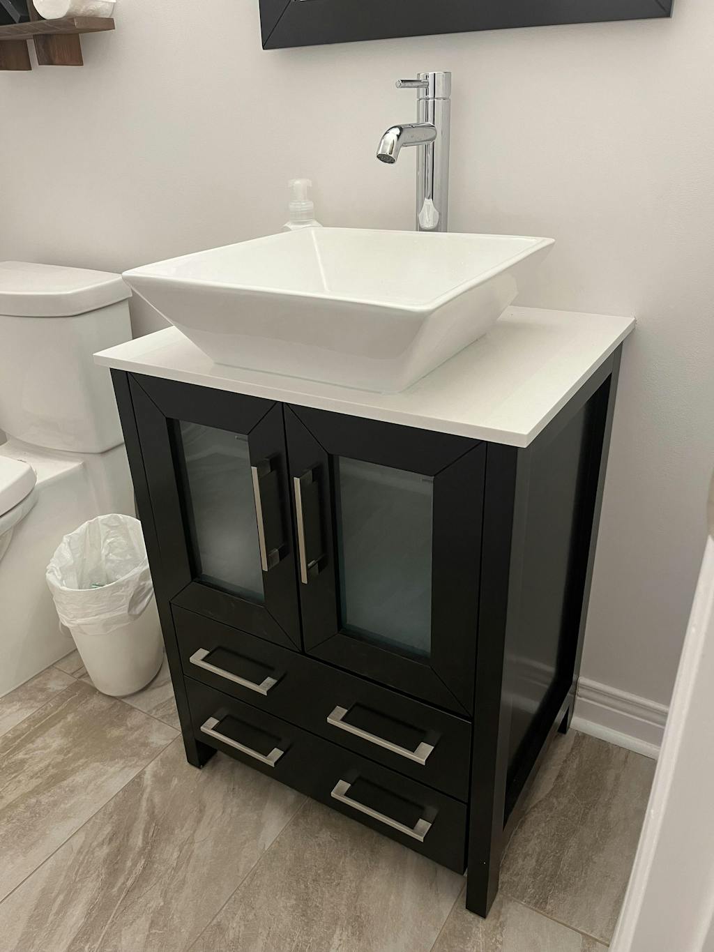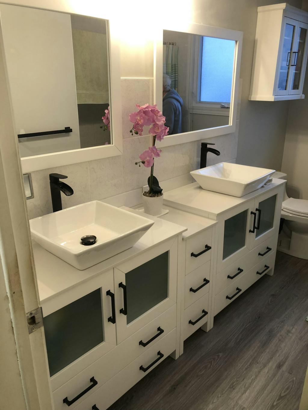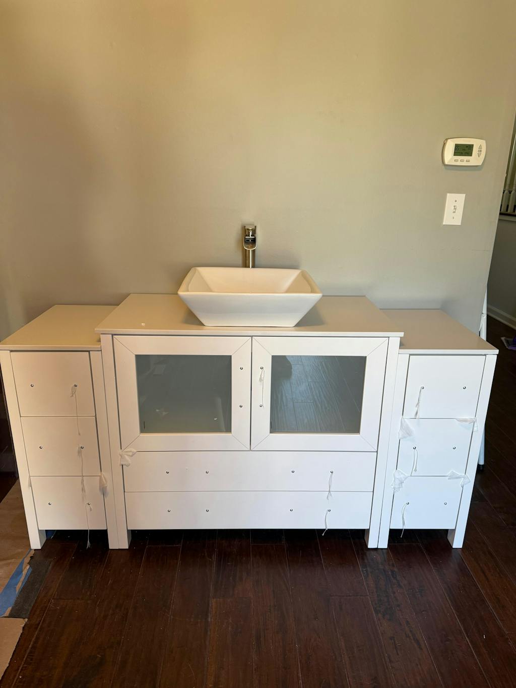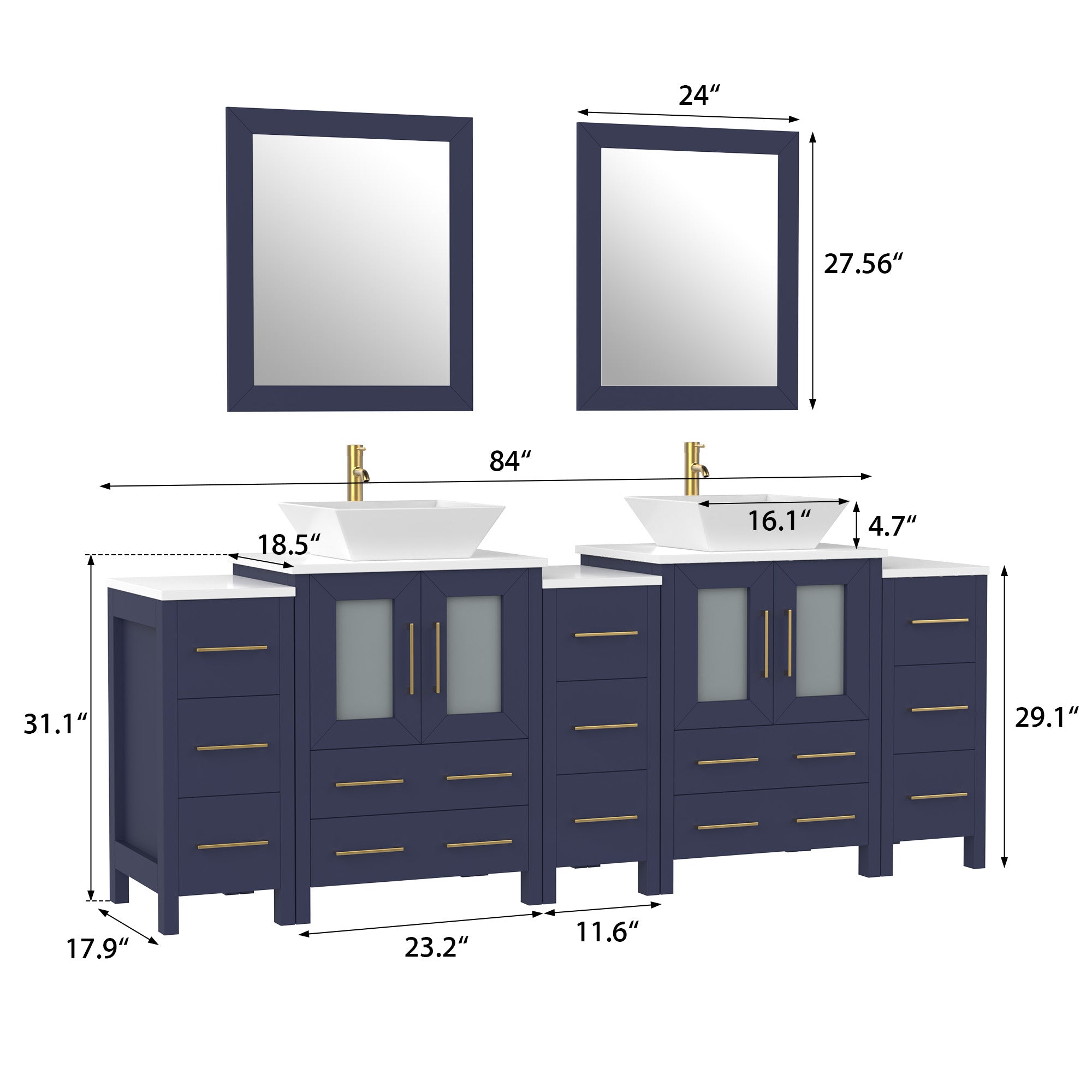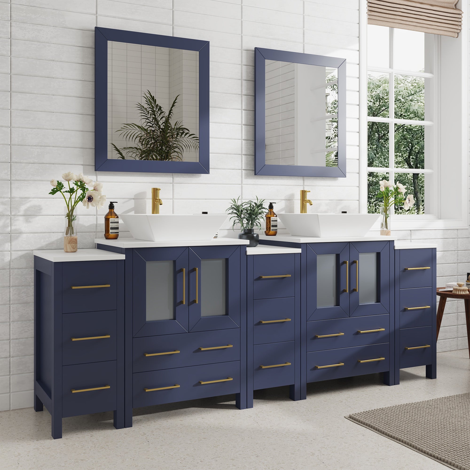 Vanity Art Monaco 84" Double Vessel Sink Bathroom Vanity Set with Sinks and Mirrors (Engineered Marble Top) - 3 Side Cabinets