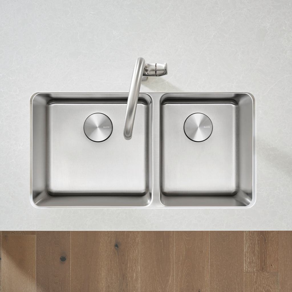 Contemporary form for everyday needs. the FORMERA 33" Double Bowl Undermount Stainless Steel Kitchen Sink is ideal for multitasking, with a convenient double bowl configuration that allows you to soak dishes in one bowl while rinsing in the other. German-engineered with corrosion-resistant stainless steel for long-lasting durability and 30 mm radius corners for low-maintenance cleaning Ñthe FORMERA 33" sink makes kitchen life easy. Combine the FORMERA 33" sink with a BLANCO faucet and accessories to create a BLANCO UNIT; a seamless, fully-integrated kitchen solution designed to transform kitchen chores into joyful experiences. Everything you need to drink, prep and clean, all in one place.