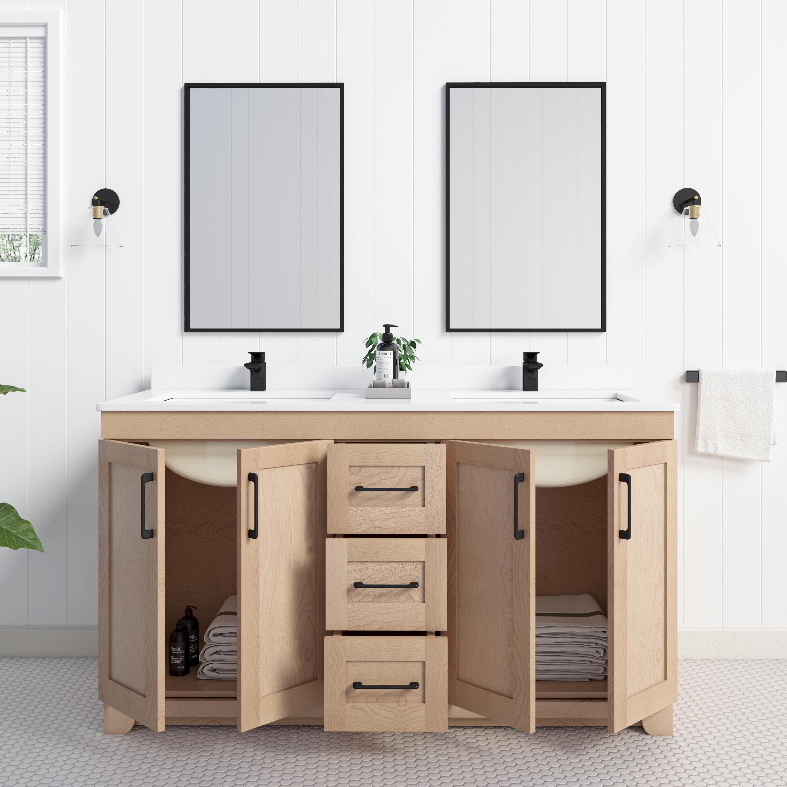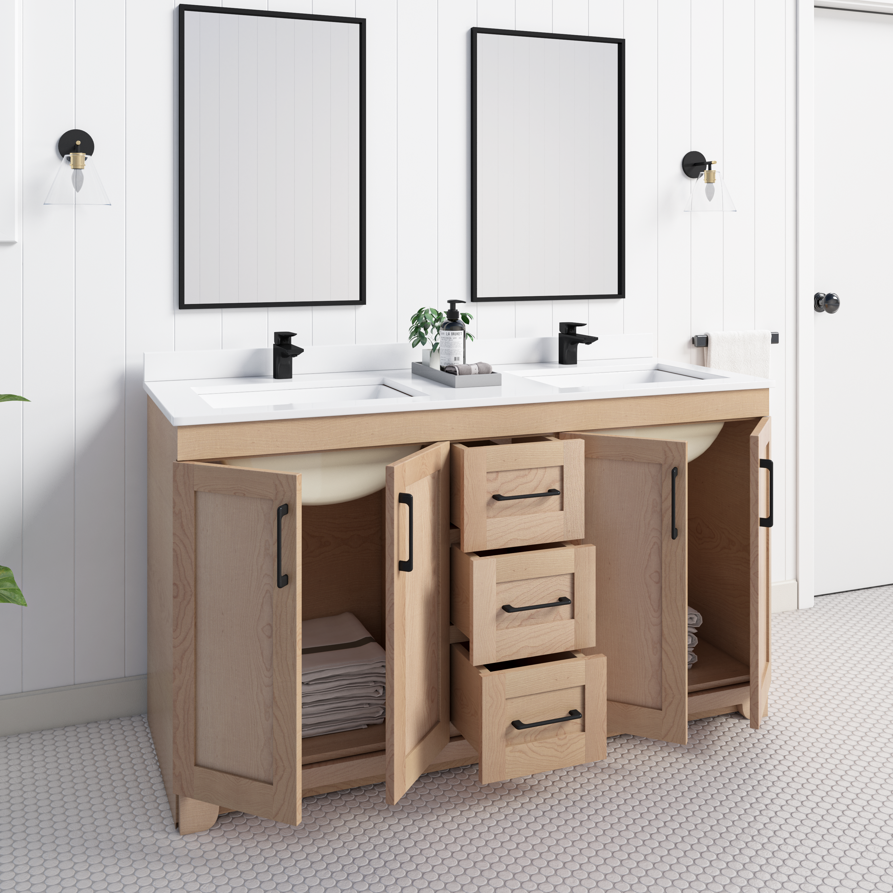 Chester 60" Double Sink Solid-Wood Vanity with Quartz Countertop