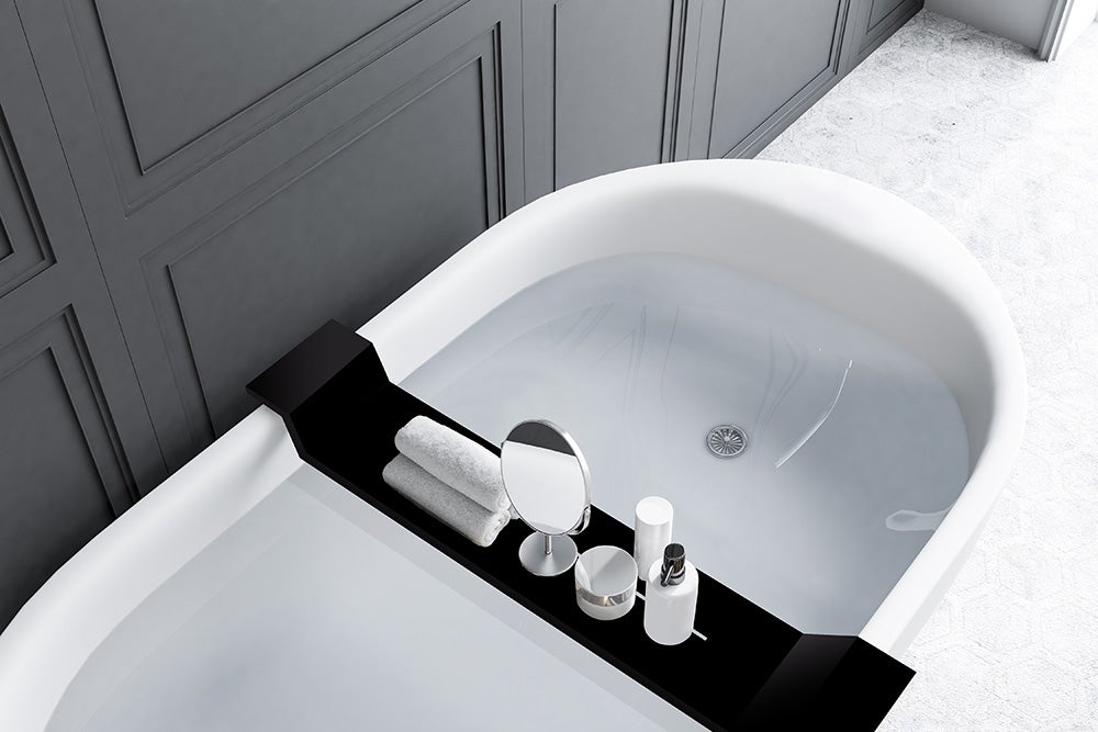 Take a moment to relax with this solid surface bathtub caddy. Perfect to place candles, your book or any other bath accessories. You wont be able to do without it during your relaxation baths!