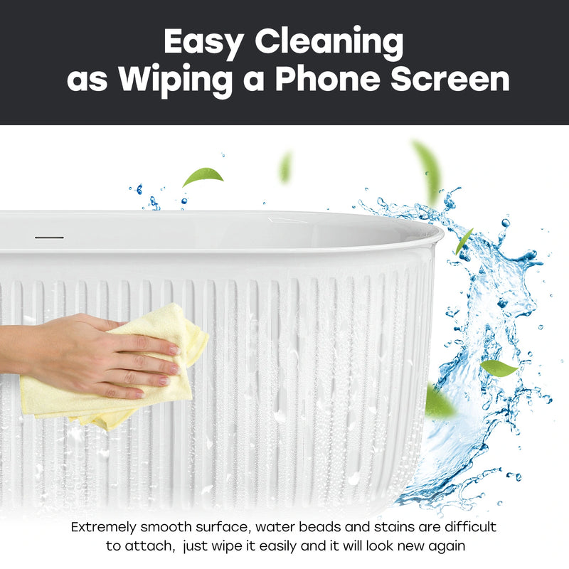 Transform your bathroom into a spa-like retreat with the Horow ST59-CH 59-inch freestanding bathtub. Crafted from premium high-gloss acrylic, this elegant soaking tub delivers exceptional durability, easy maintenance, and long-lasting shine. Its sleek freestanding design with refined stripe detailing complements both modern and classic bathroom spaces, making it a striking centerpiece for relaxation and comfort.