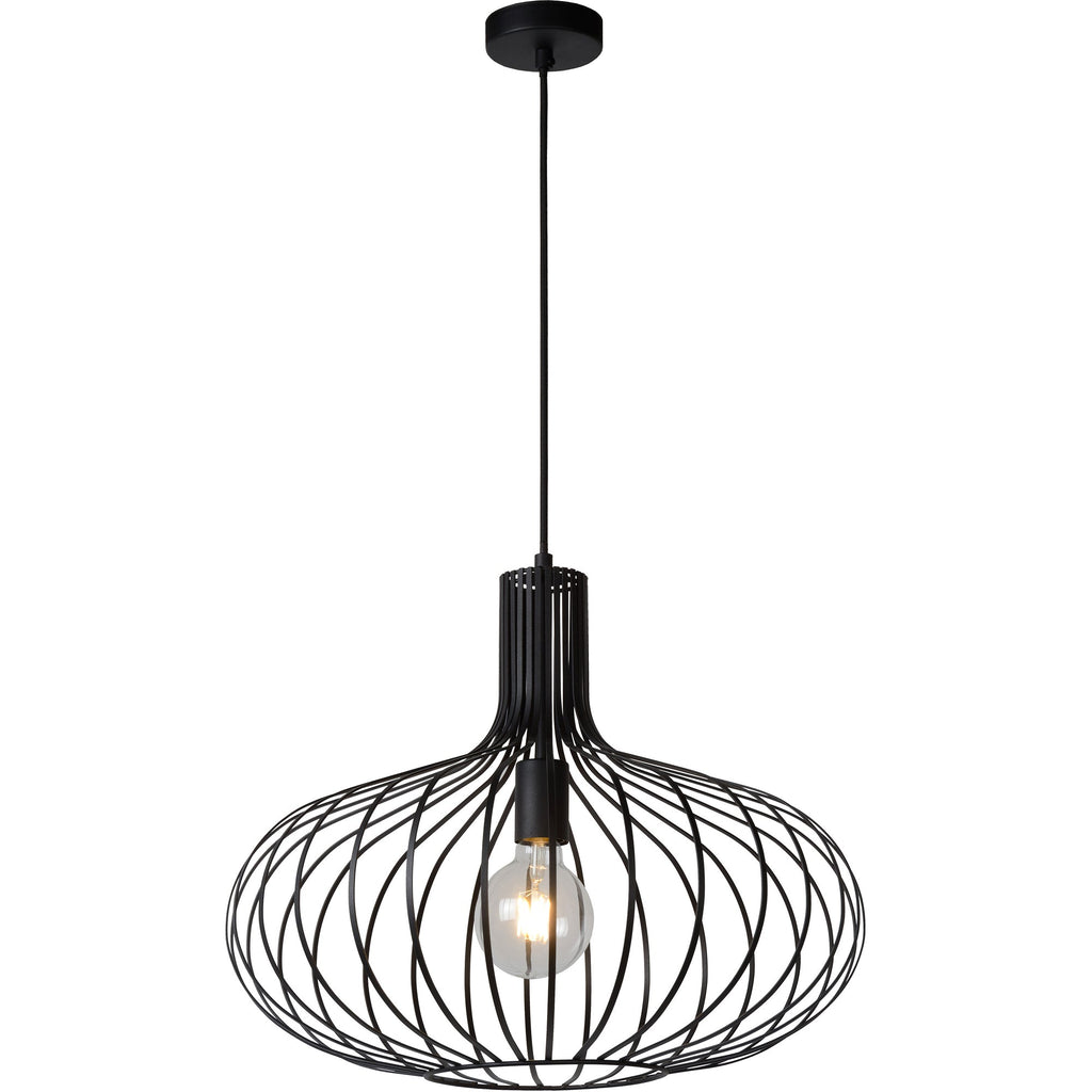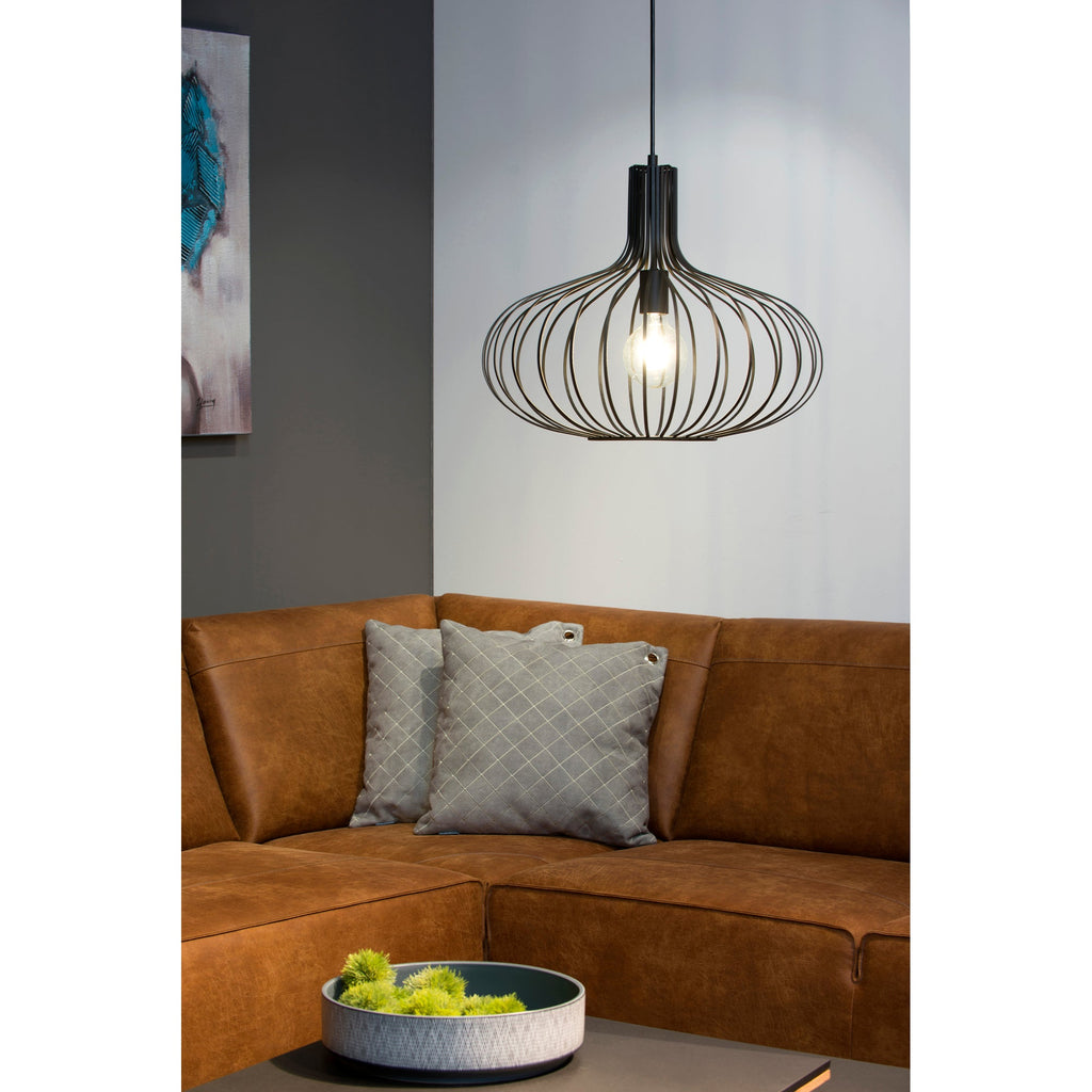 Style in suspension, this lighting design fits effortlessly within the mid-century kitchen. While the textured black iron is strong and bold, the delicate curves of the piece balance out its overall impact. This piece fits effortlessly when set amongst modern and vintage accessories.
