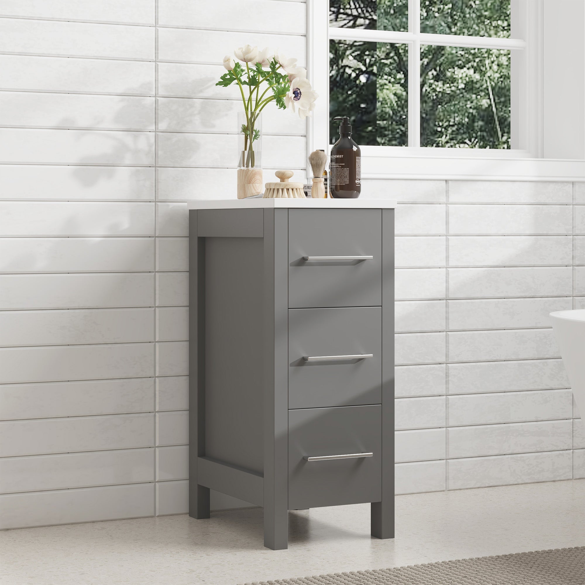 Vanity Art Monaco 12" Bathroom Vanity Side Cabinet with Engineered Marble Top