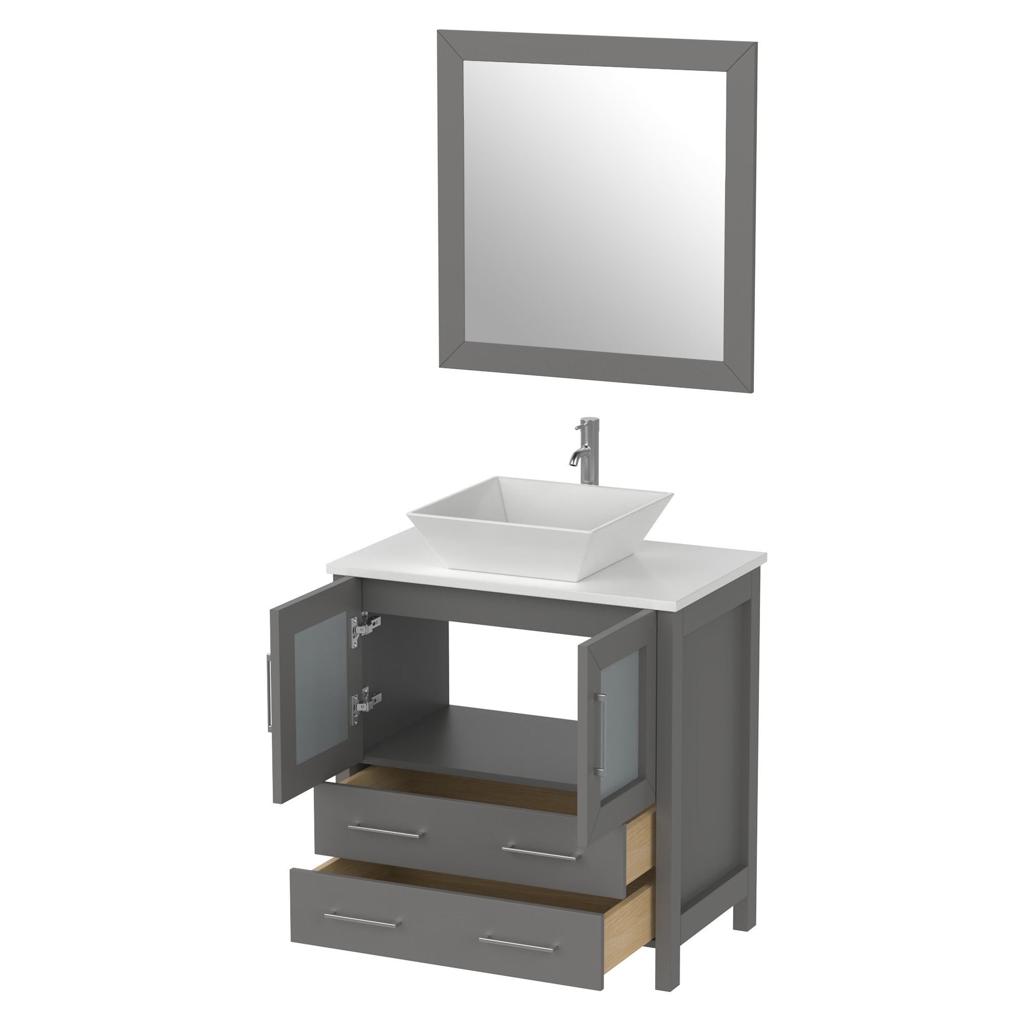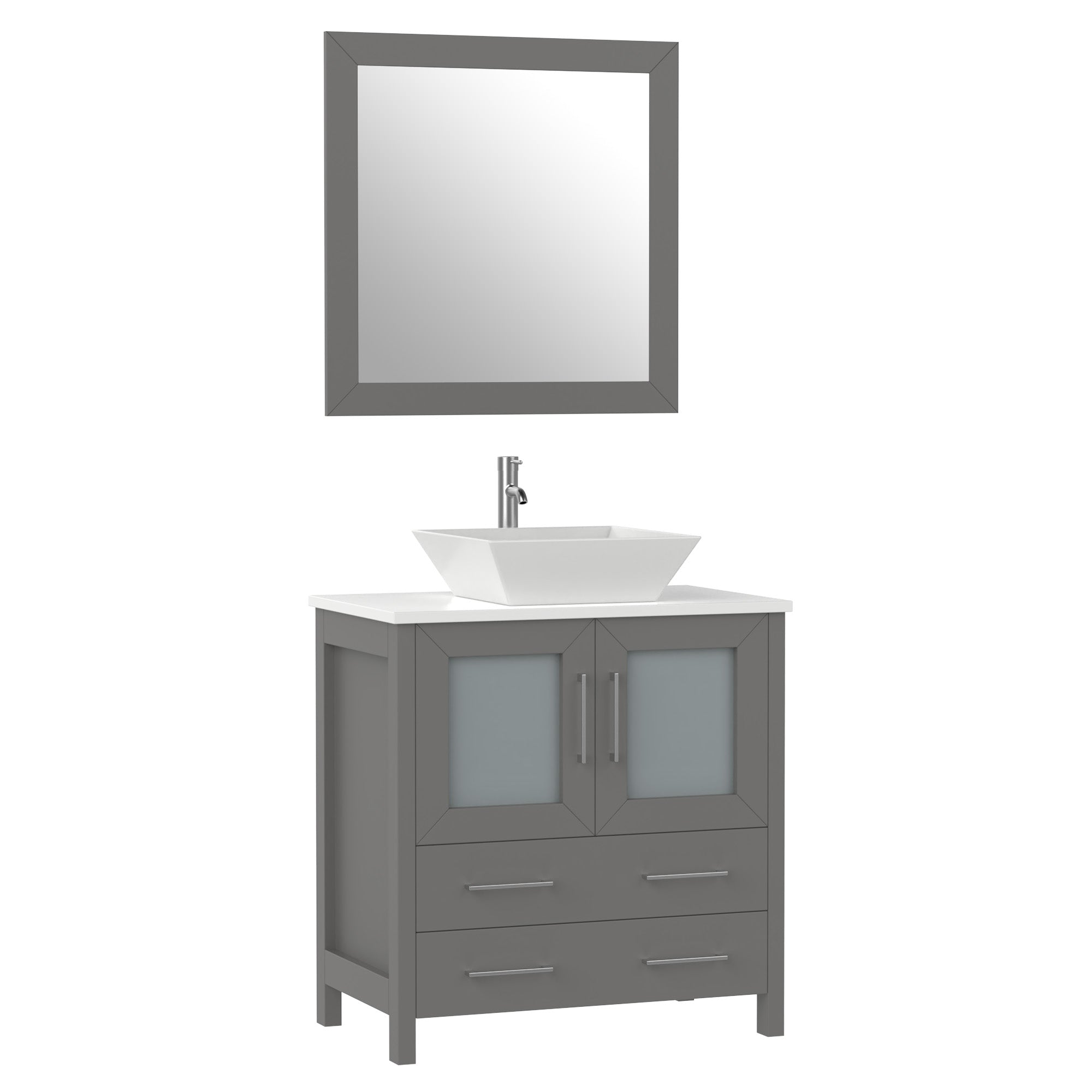 Vanity Art Monaco 30" Bathroom Vanity Set With Sink & Mirror - Engineered Marble Top