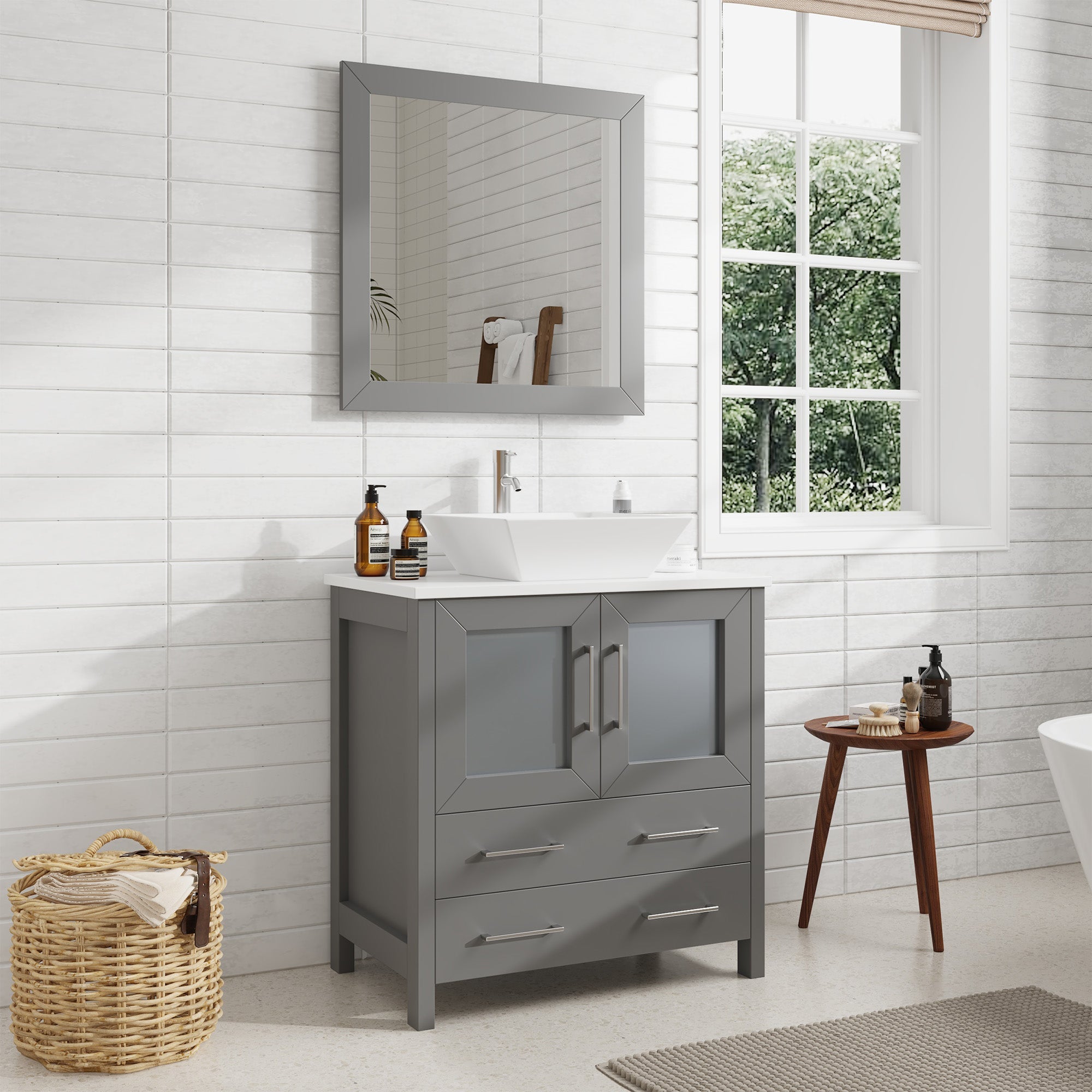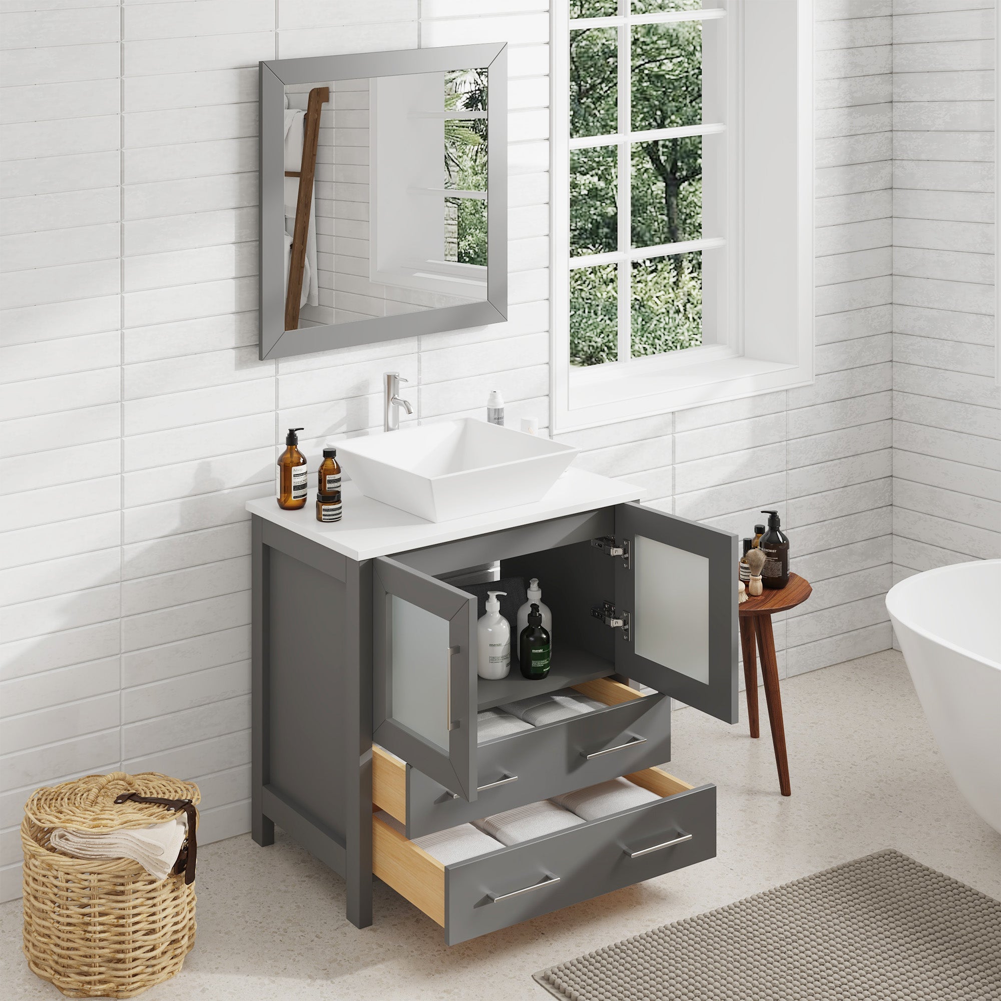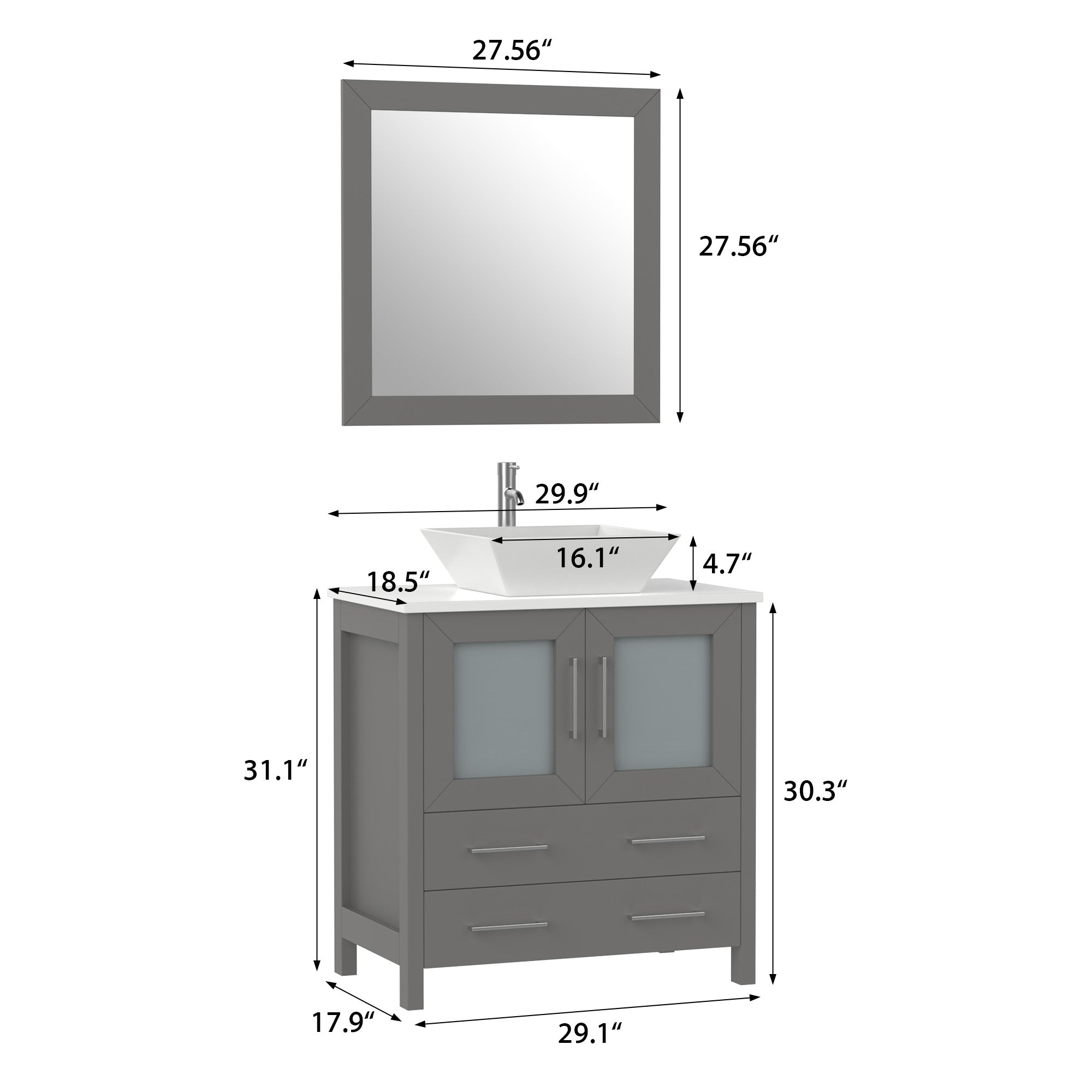 - WALL MOUNTING MIRROR: Each bathroom sink vanity cabinet purchase includes a matching square wall mirror, enhancing the bathroom's aesthetics and cohesion with its color-matched frame