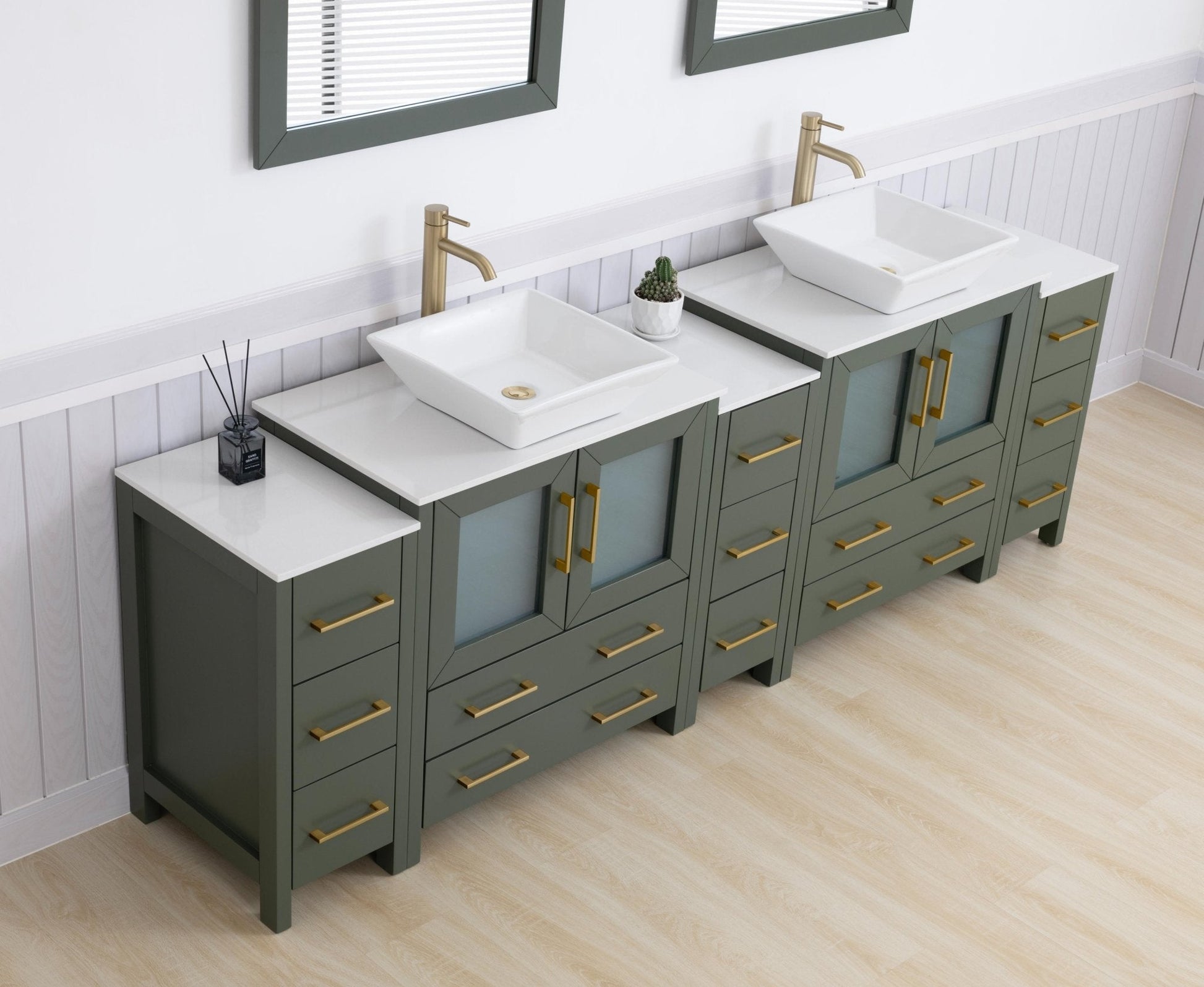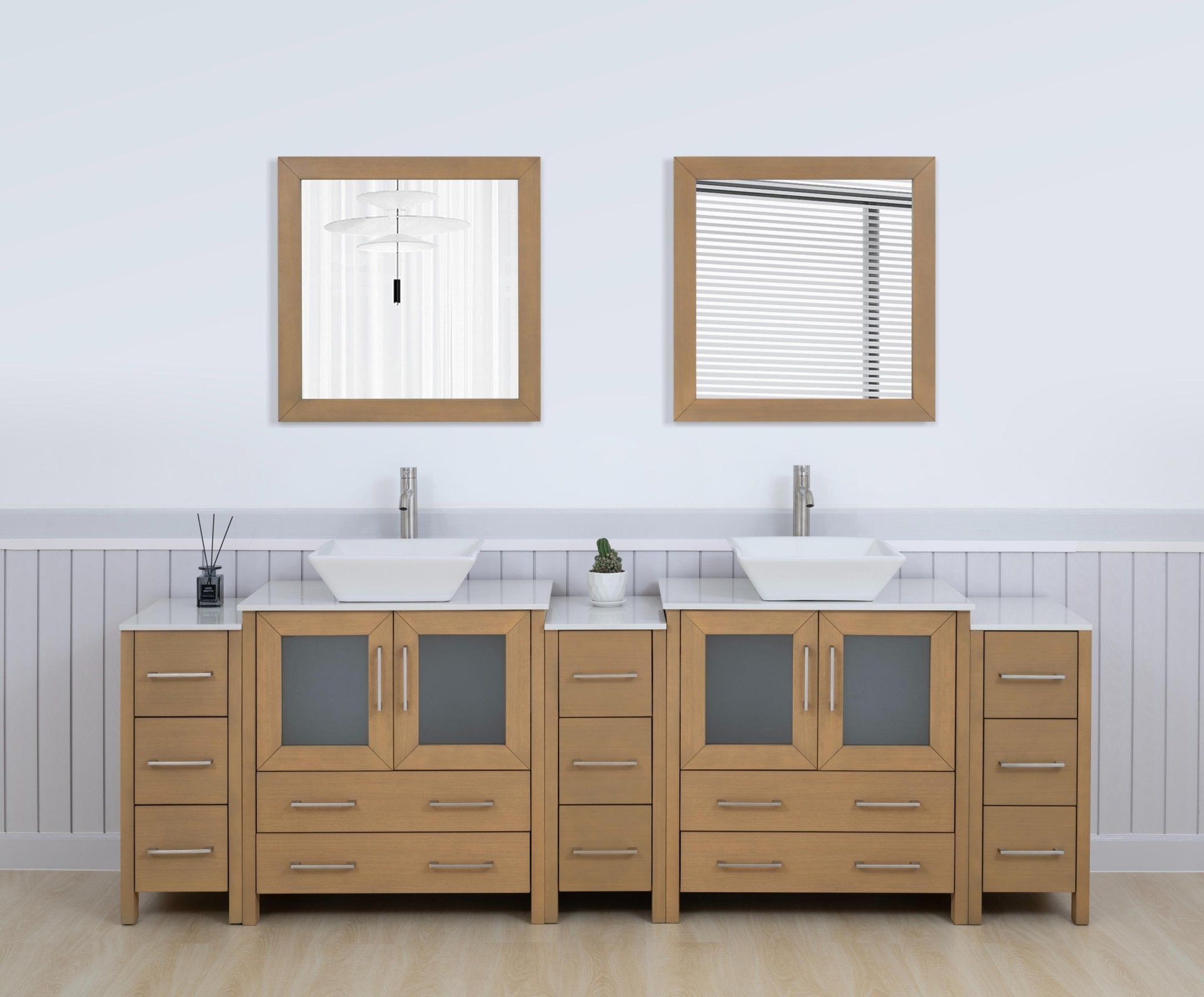 Vanity Art Monaco 96" Double Vessel Sink Bathroom Vanity Set with Engineered Marble Top and Mirrors - 3 Side Cabinets