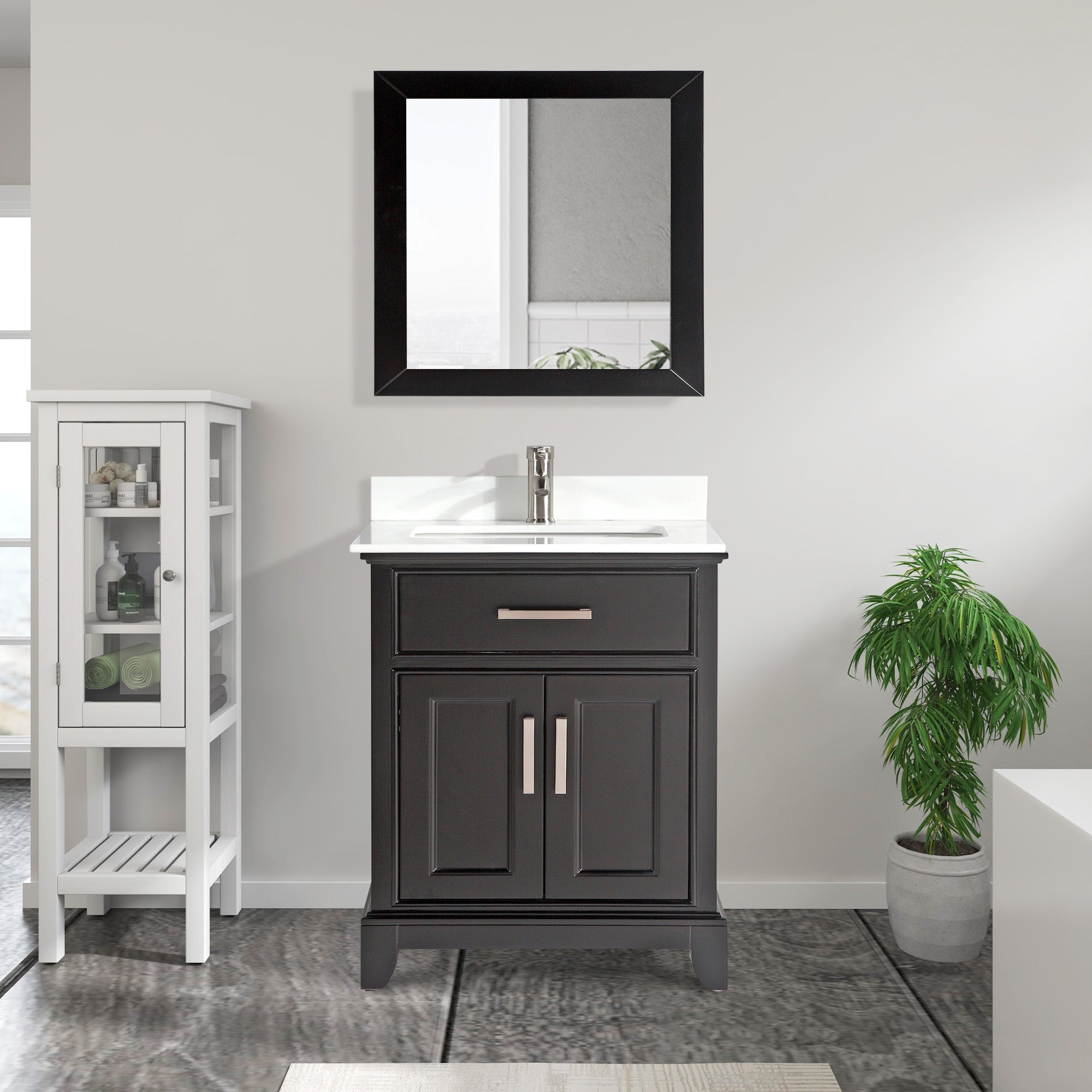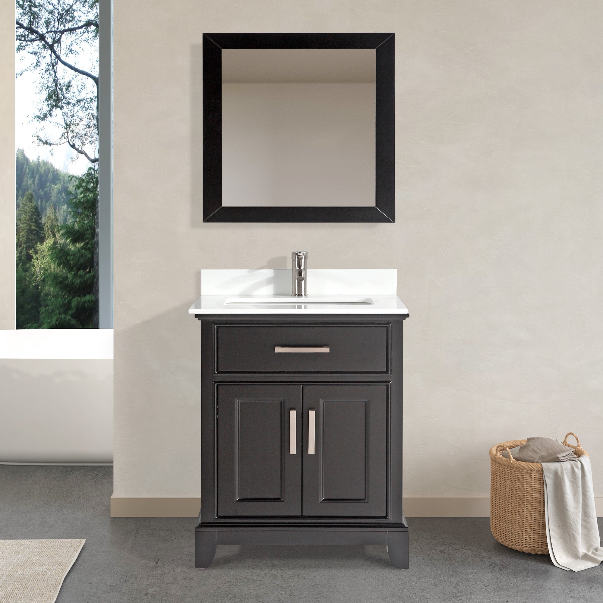 - COMPLETE BATHROOM SET: Included in this single sink bathroom vanity set is a crystal-clear wall-mounted bathroom mirror with a frame, providing a convenient spot for your morning routine (Faucet is not included)