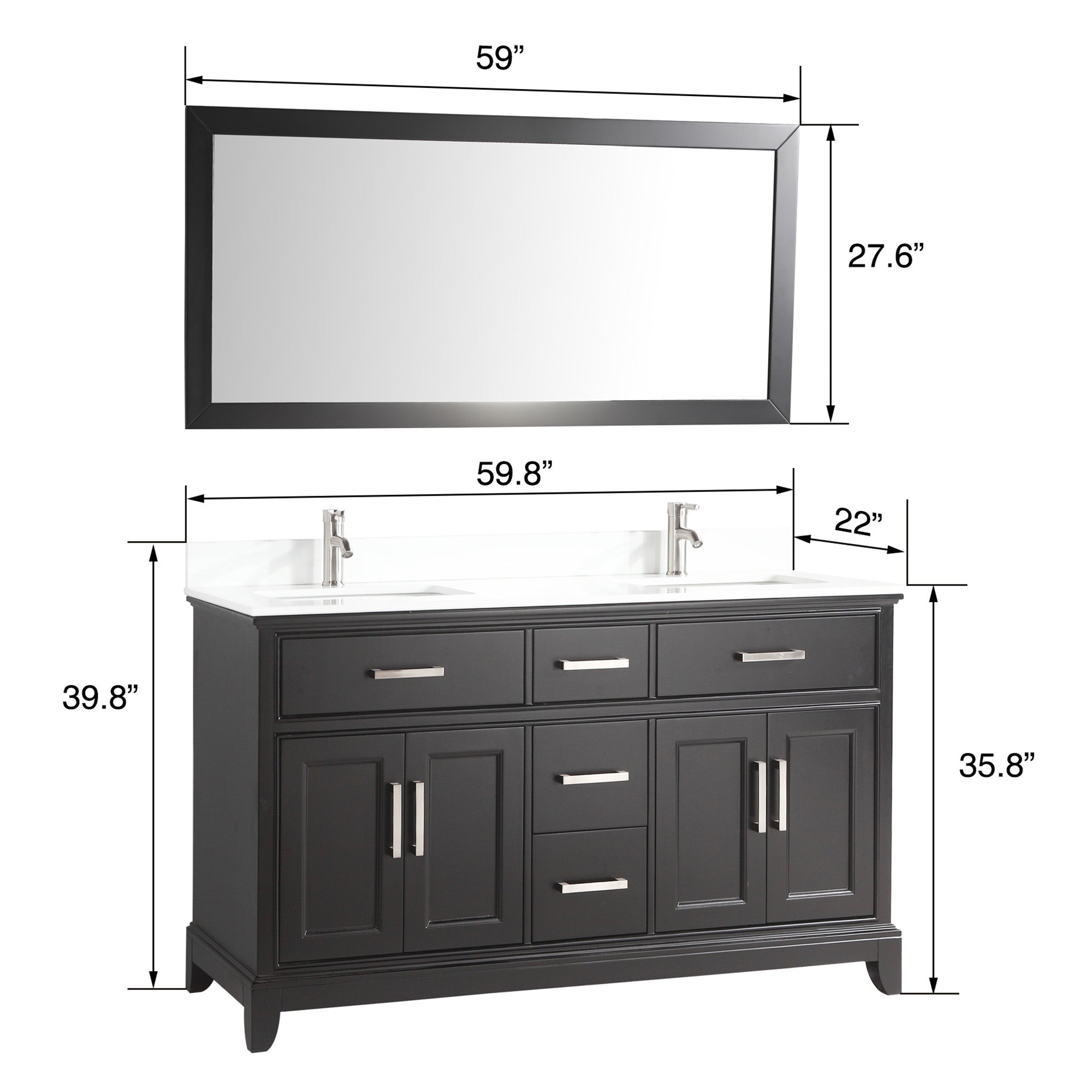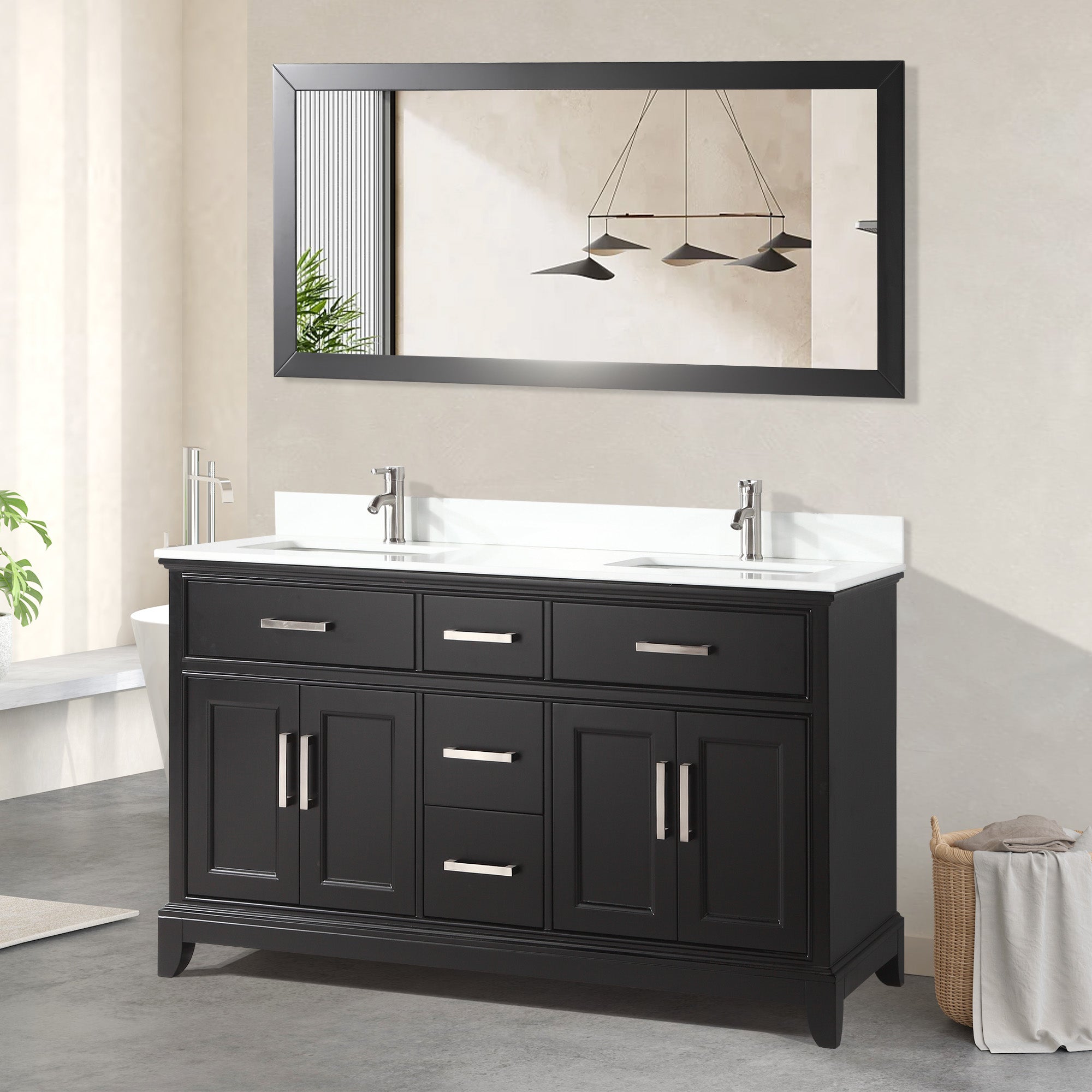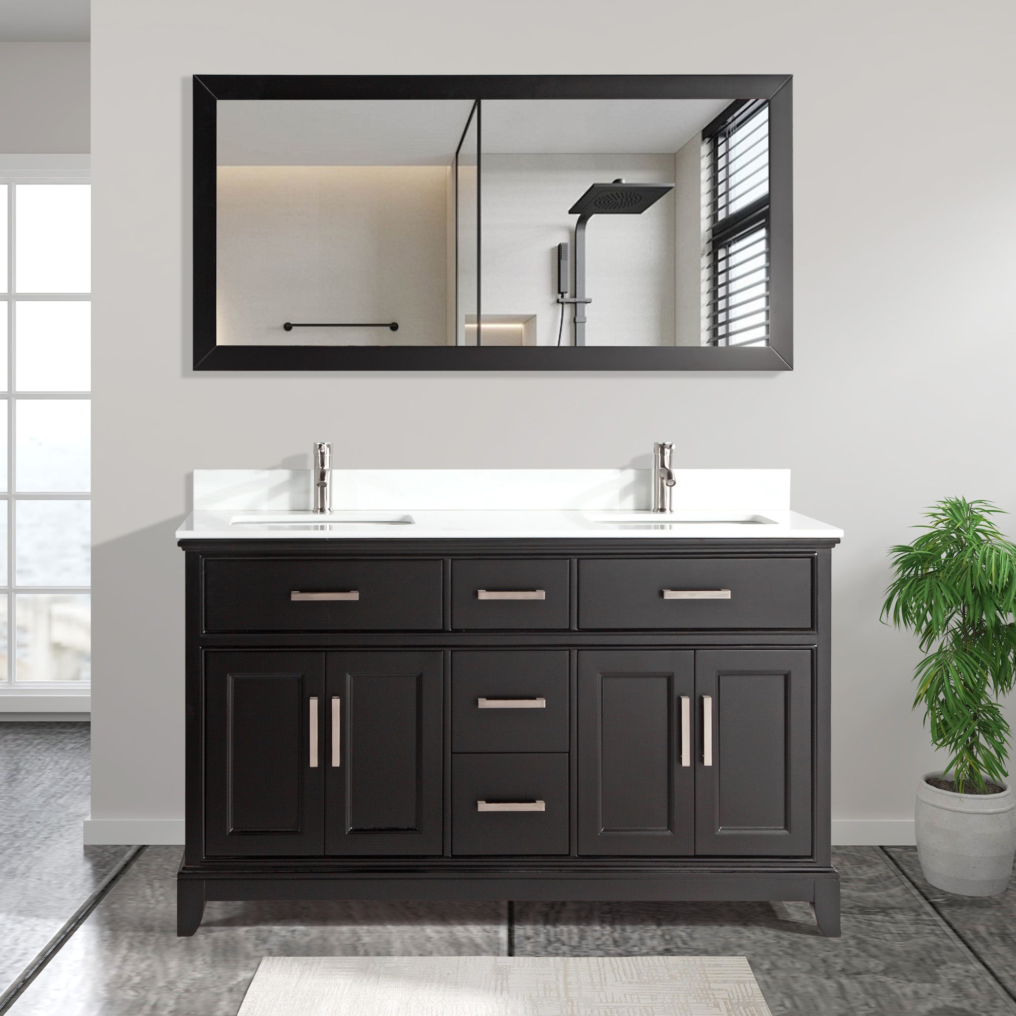 Vanity Art presents the ultimate solution to your bathroom storage needs - our premium vanity bathroom cabinet. Crafted with precision and designed for durability, this cabinet vanity with sink boasts a combination of moisture-proof solid + manufactured wood materials, ensuring it stands up to the rigors of daily use. The engineered marble top not only enhances its longevity but also makes cleaning a breeze, maintaining its elegant appearance effortlessly. The mounted dual sink exudesa modern charm that pairs seamlessly with the elegant cabinet top. With a crystal-clear wall-mounted bathroom mirror and matching frame, your morning routine becomes simplified as everything you need is conveniently in one place. No more noisy door slams! The soft-closing door hinges and dovetailed drawers, along with brushed nickel door and drawer handles, guarantee a smooth and quiet operation. Plus, the ample storage space accommodates all your bathroom essentials. Not limited to the bathroom, this versatile bathroom sink vanity is suitable for various settings, including the farmhouse living room, bedside, bedroom, or even as additional kitchen storage, thanks to its standard design. And worry not about installation – it's a simple process.