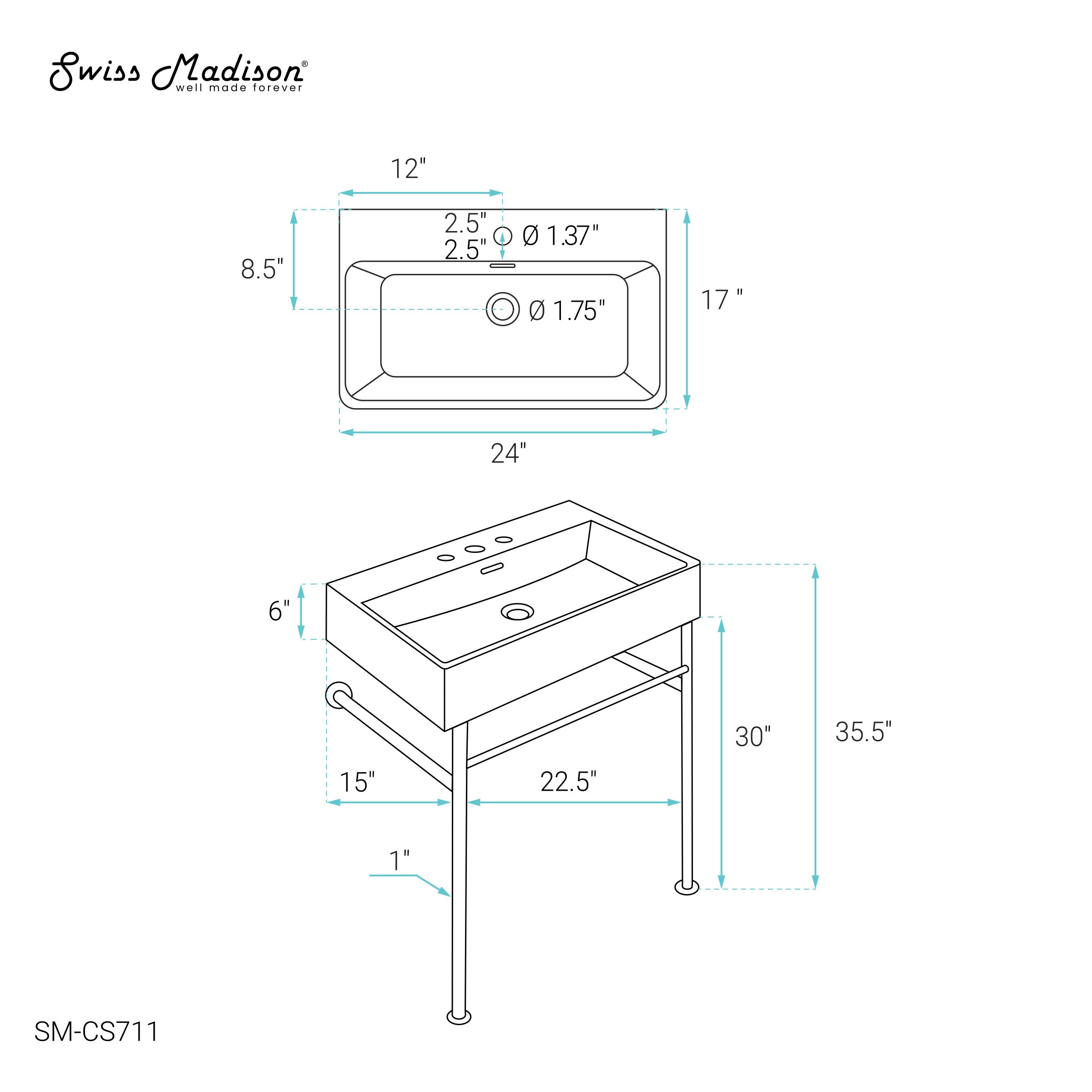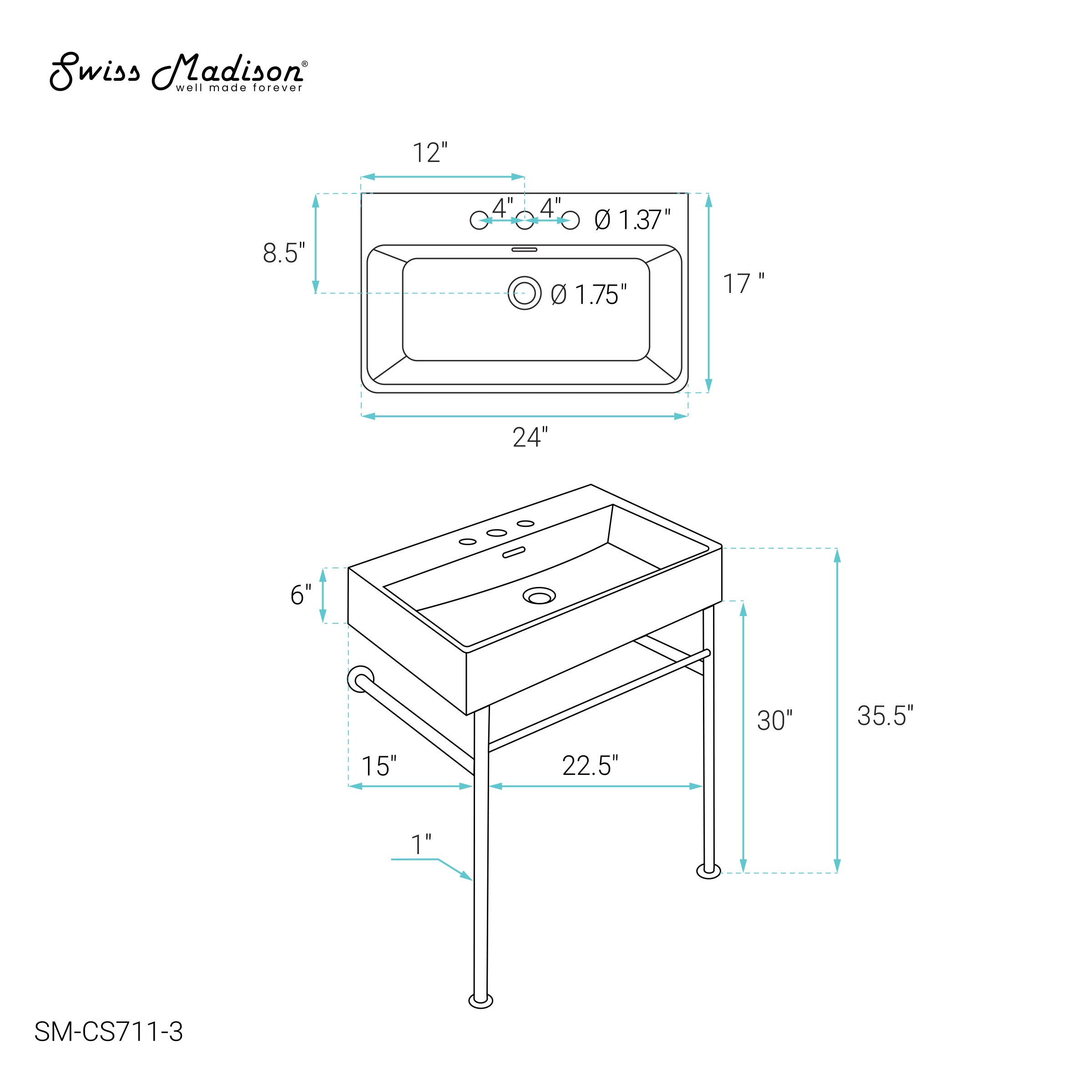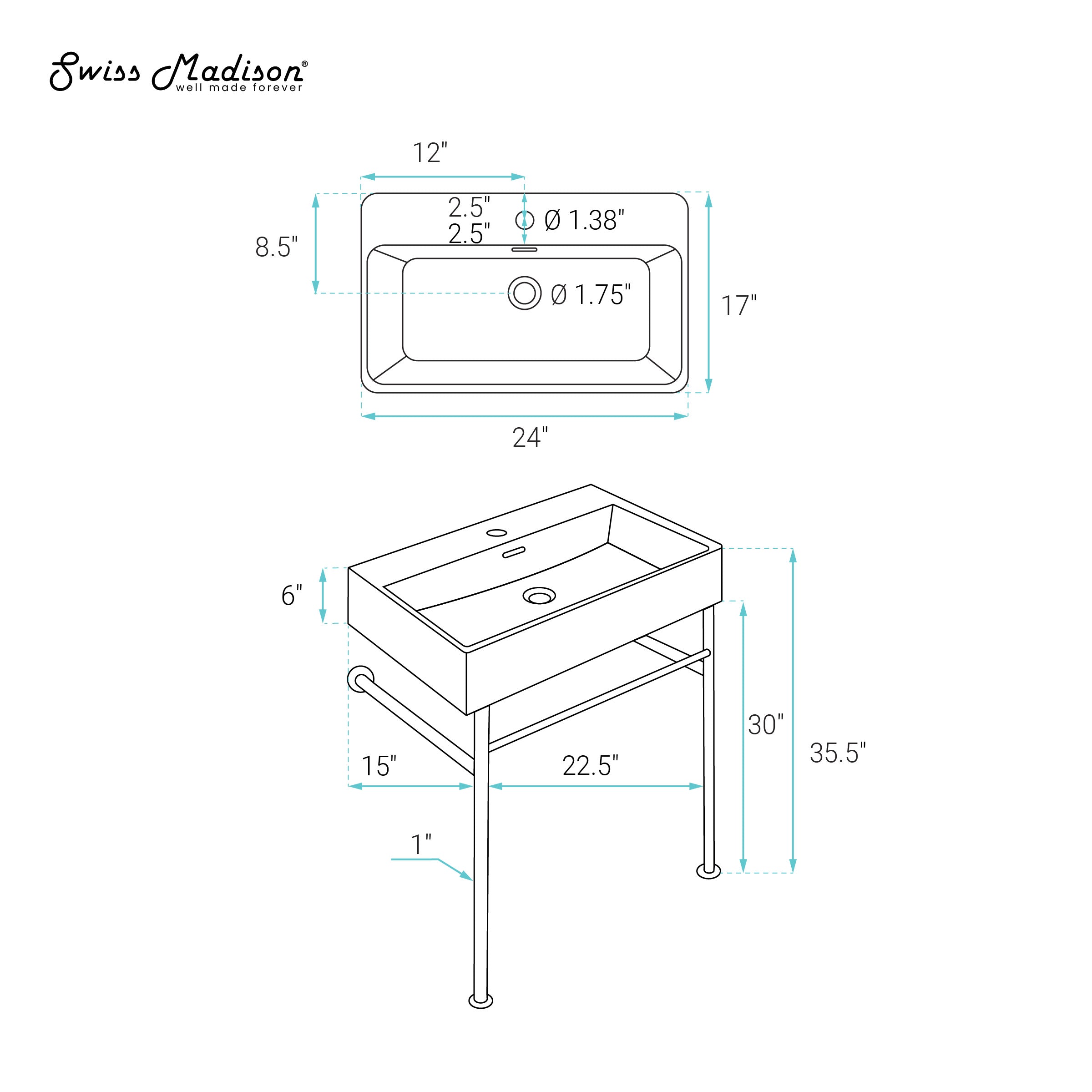 Swiss Madison Claire 24" Ceramic Console Sink Basin and Legs