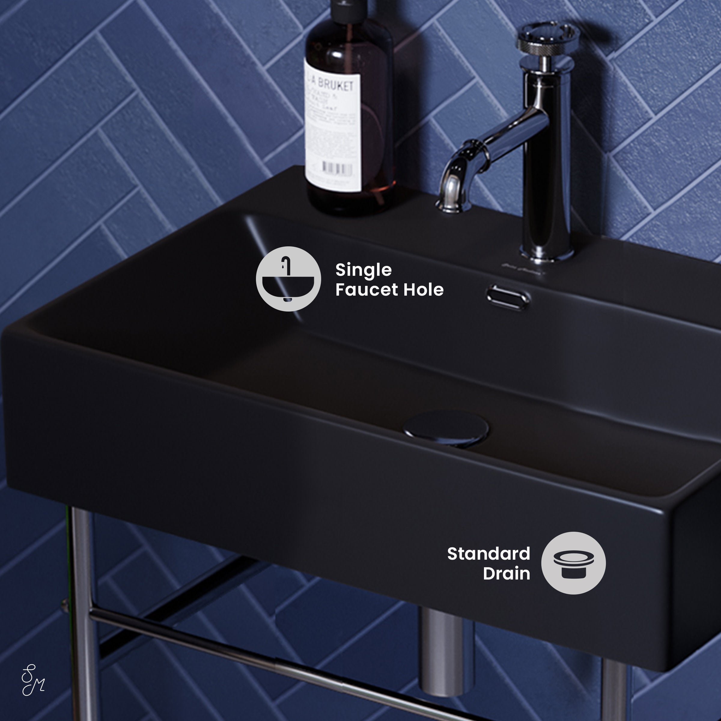 - Overflow: Equipped with an overflow that offers easy installation, spill prevention, and space-saving properties.