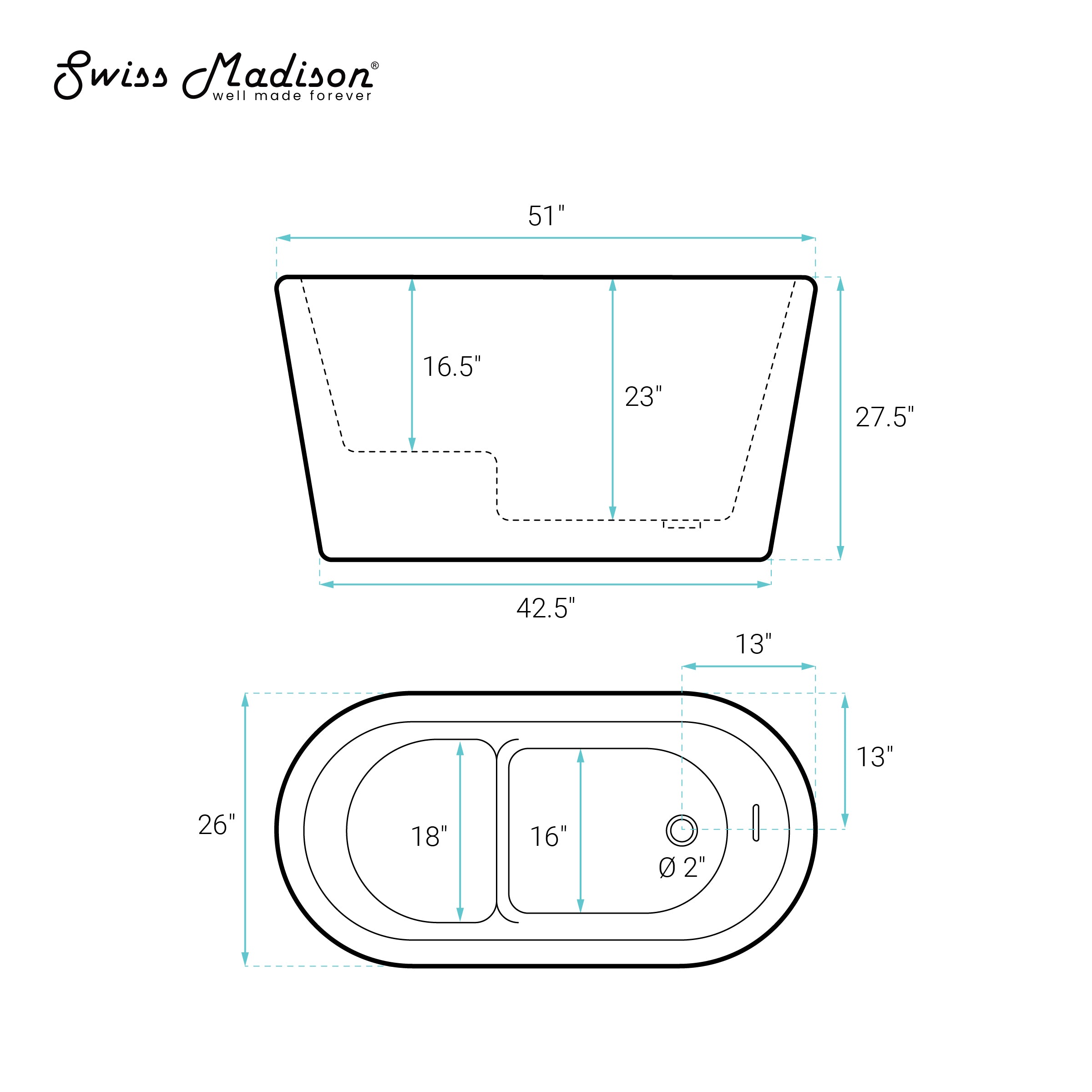 Swiss Madison Nanterre 51" Japanese Soaking Freestanding Bathtub in Glossy White, Drain Included