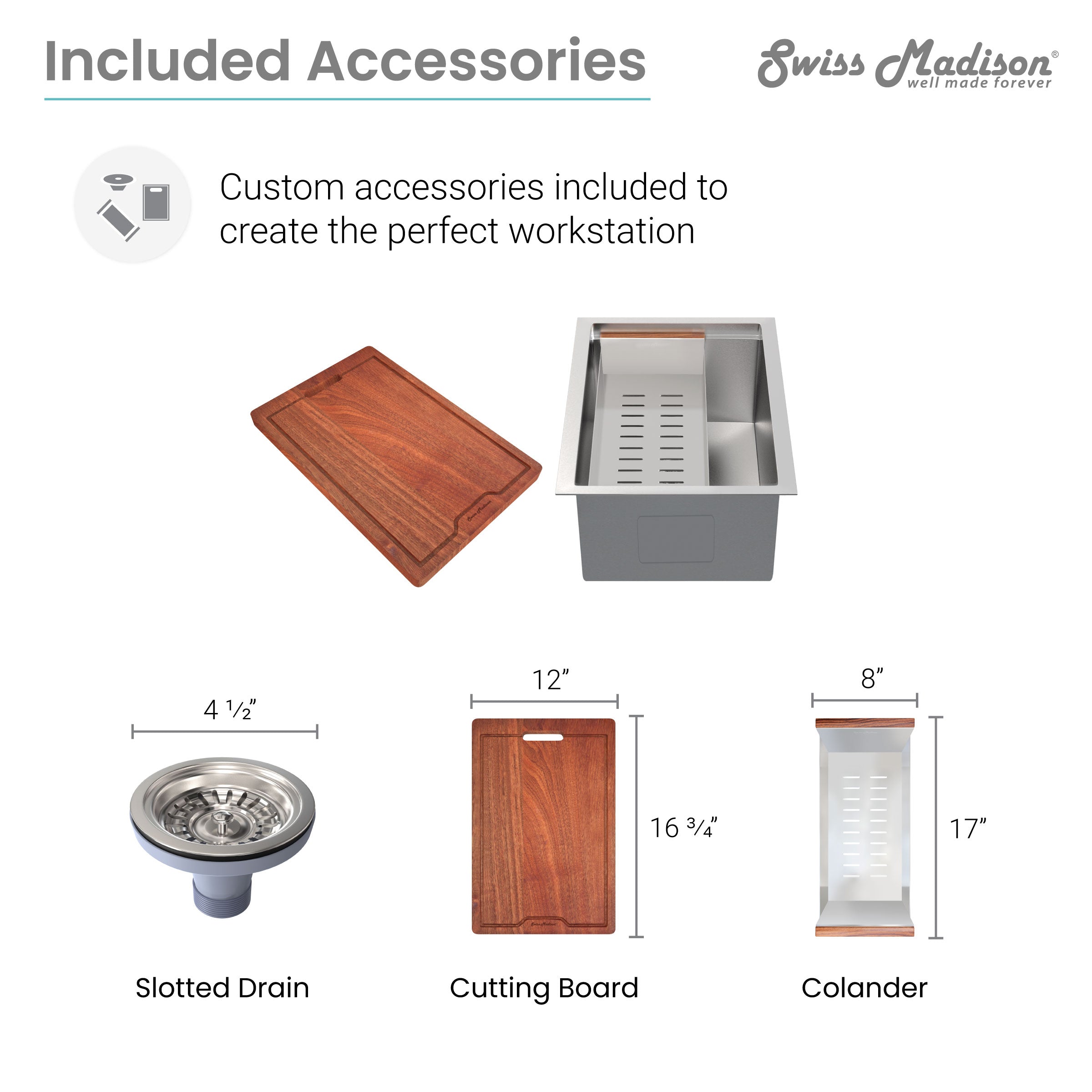 Swiss Madison Rivage 15" x 19" Single Basin Undermount Kitchen Workstation Sink in Polished Chrome