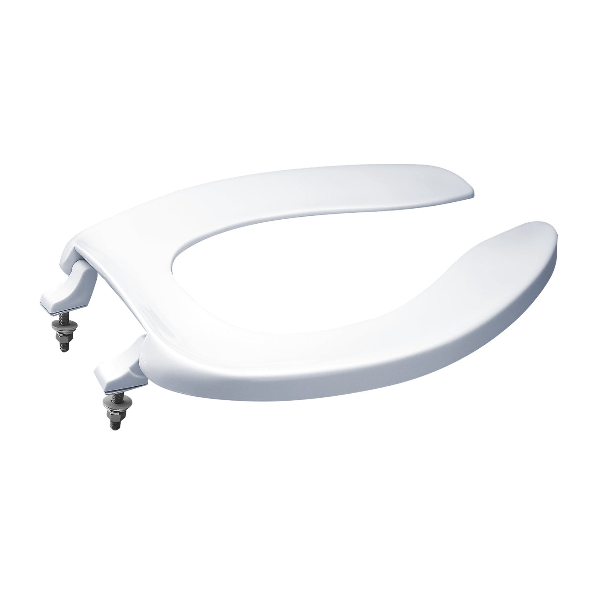 The TOTO elongated, open front toilet seat is built to last with an extremely rugged high impact solid plastic. Designed for commerical application, the contemporary contoured seat does not come with cover. This provides a sleek, simple look and encourages a more hygenic enviroment. Includes seat with lid, four color matched bumpers, concealed hinge, and mounting hardware.