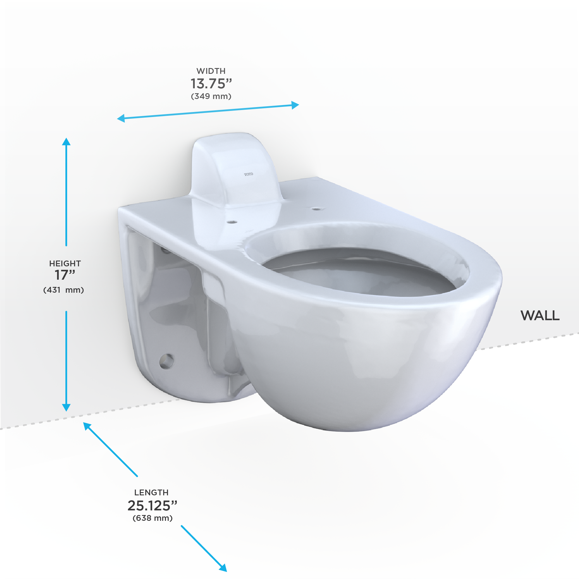Toto Tornado Flush Commercial Flushometer Wall Mounted Toilet - Elongated