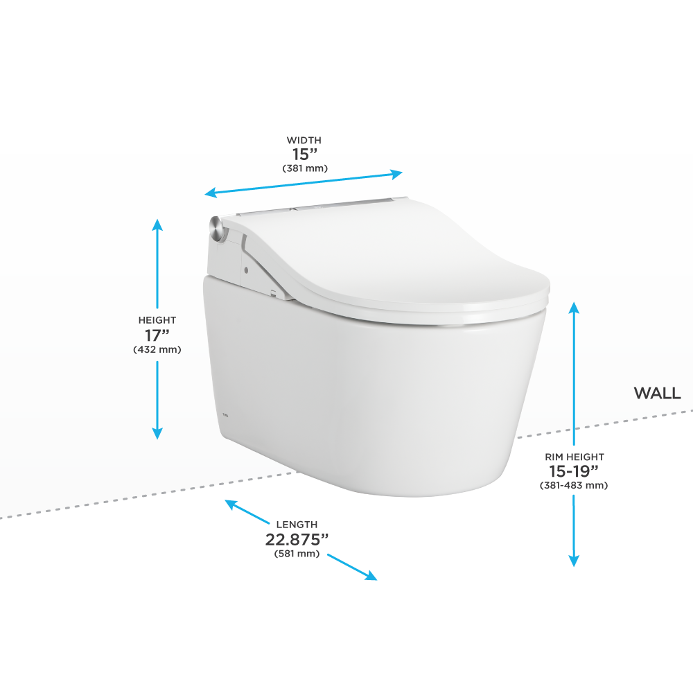 - Included: Wall mounted bowl, in-wall tank with auto flush, RW WASHLET+, dual flush push button, and mounting hardware