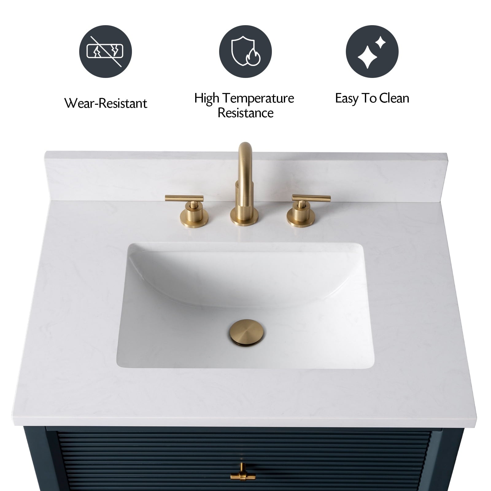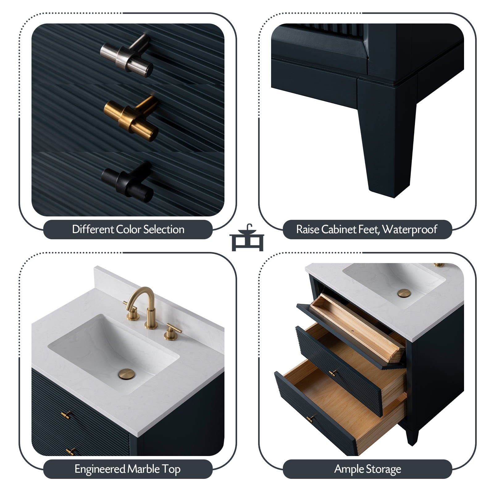 - SLEEK COUNTERTOP: The bathroom sink vanity features an engineered marble countertop that is not only visually stunning but also easy to clean, providing a seamless blend of aesthetics and practicality