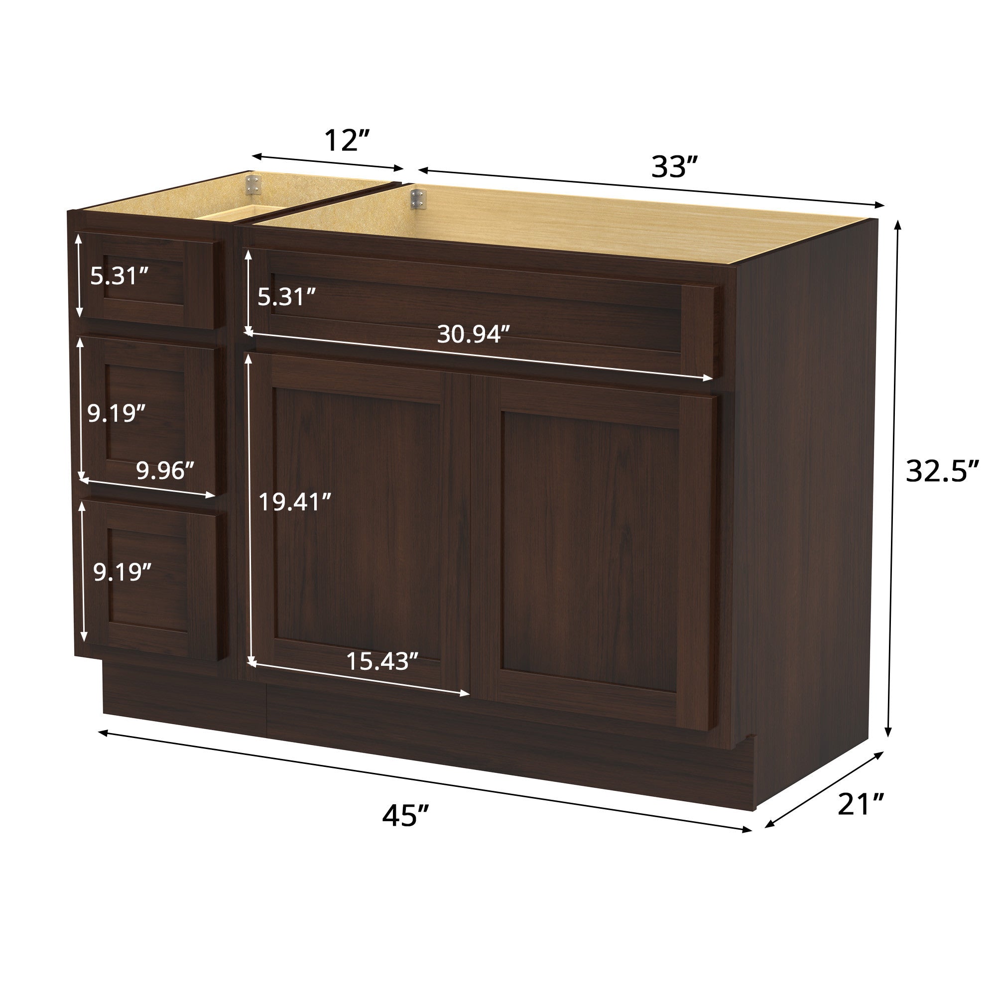 Vanity Art Vista 45" Oak Bath Vanity Cabinet without Top - 3 Drawers and 2 Doors