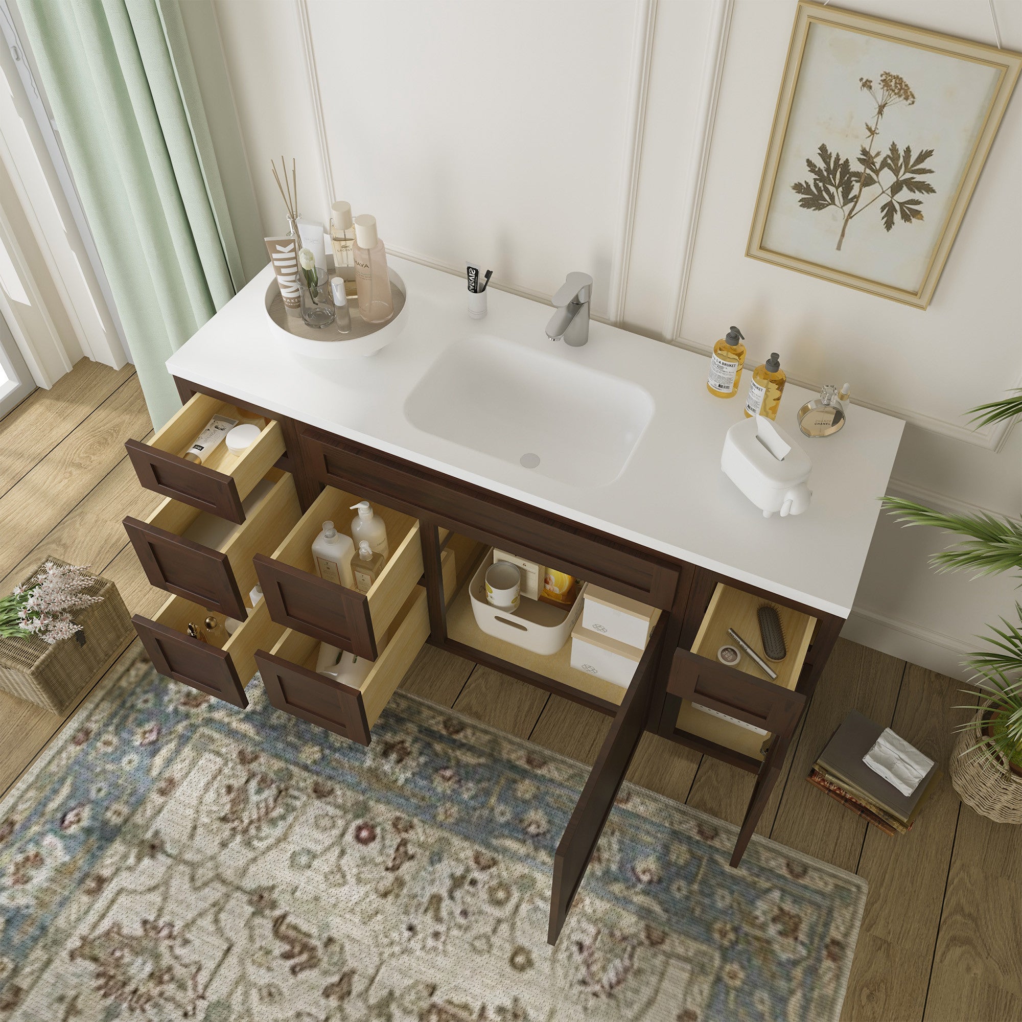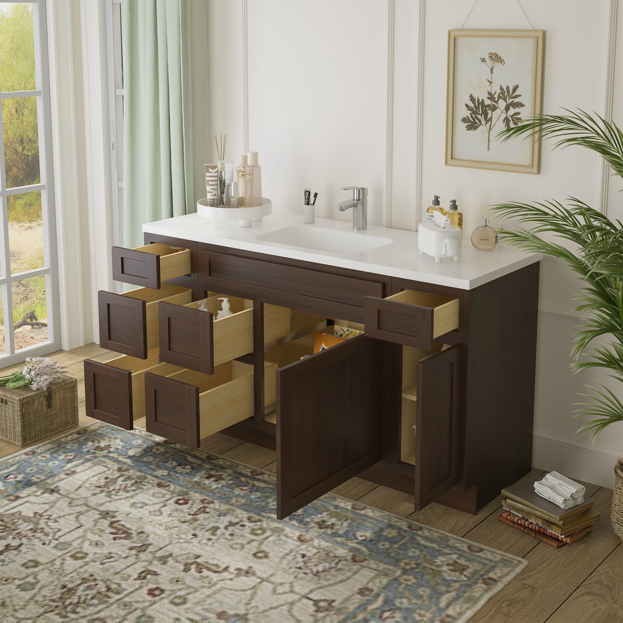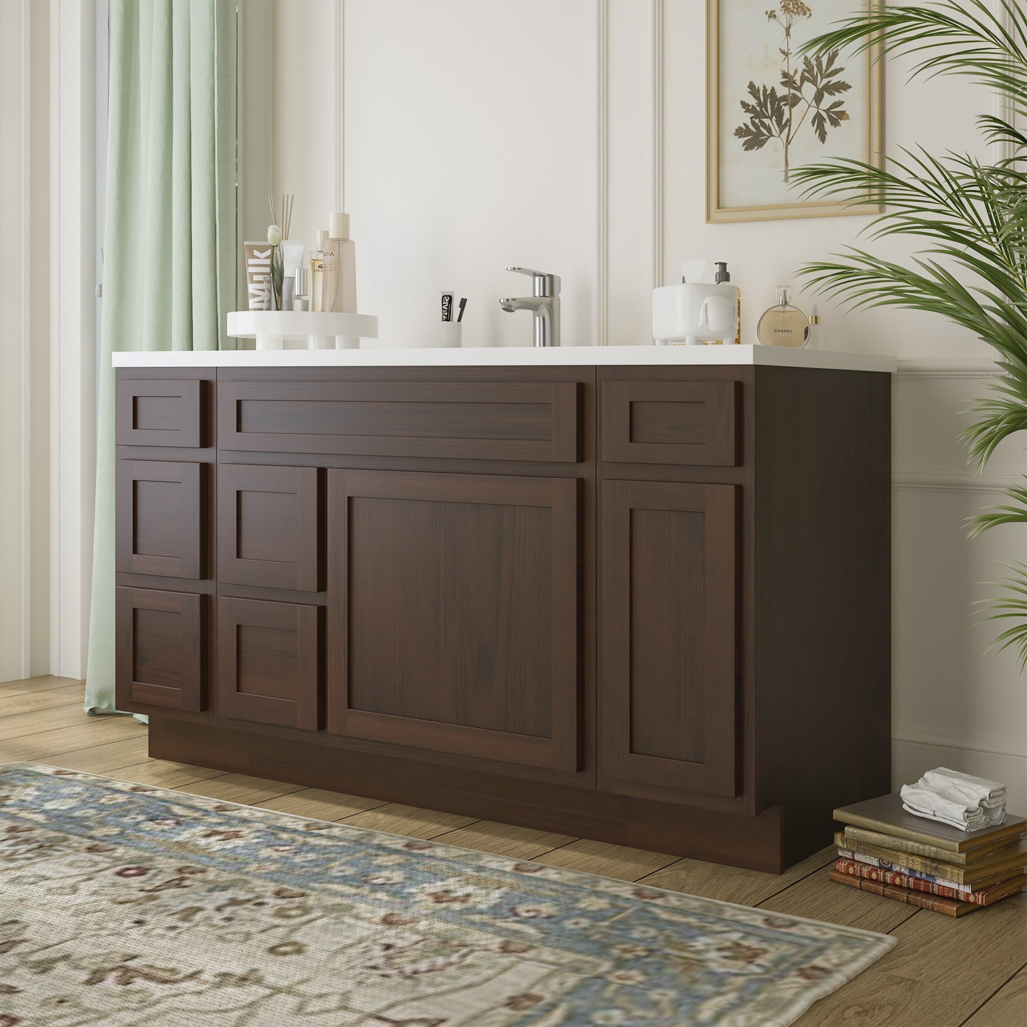 Vanity Art Vista 60" Oak Bath Vanity Cabinet without Top - 6 Drawers and 2 Doors
