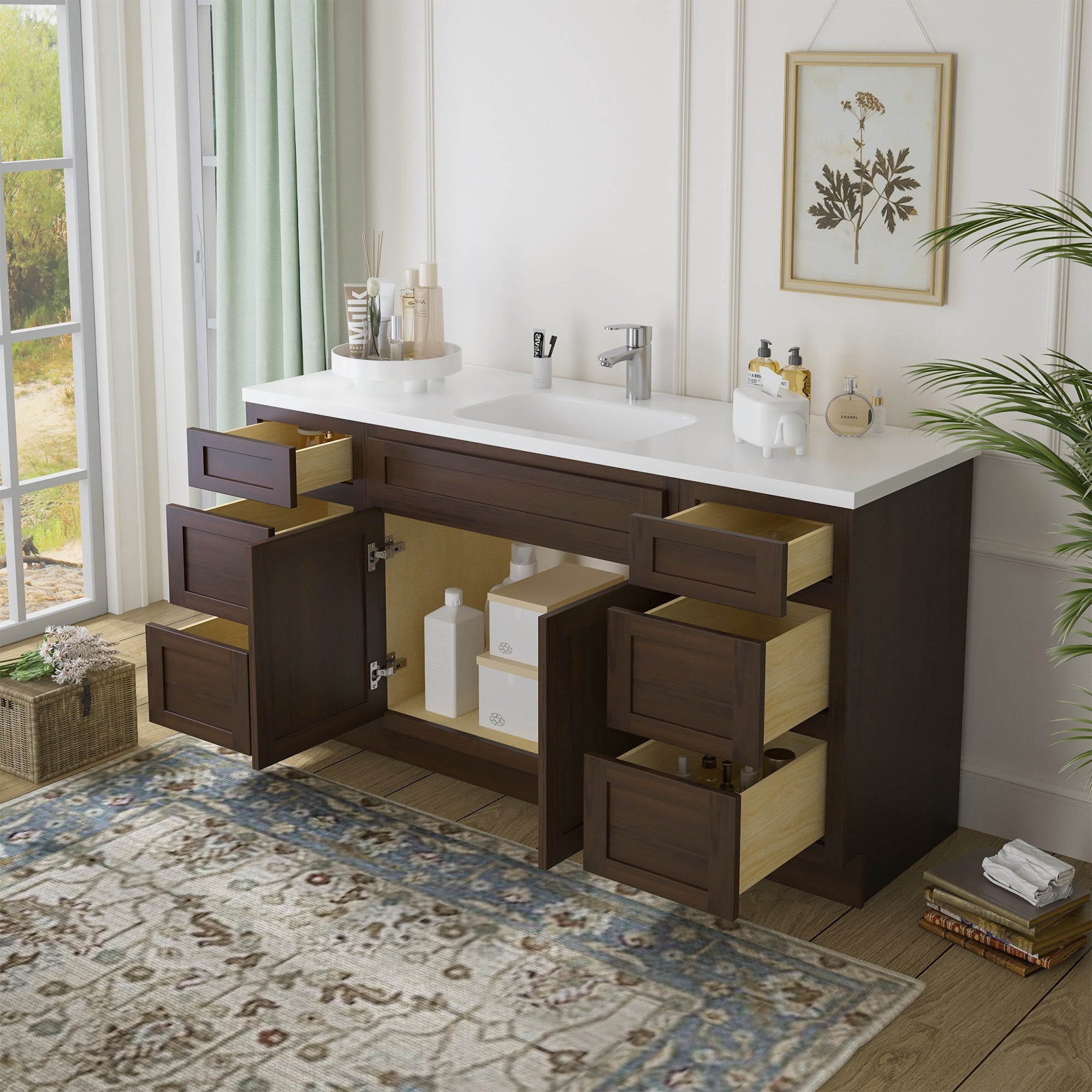 Vanity Art Vista 60" Oak Bath Vanity Cabinet without Top - 6 Drawers and 2 Doors